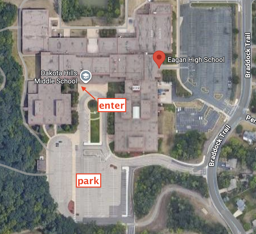 WHERE: Eagan High School, enter Door 55 on south side of the school in the DHMS/EHS horseshoe! We'll greet you there and send you toward the room.